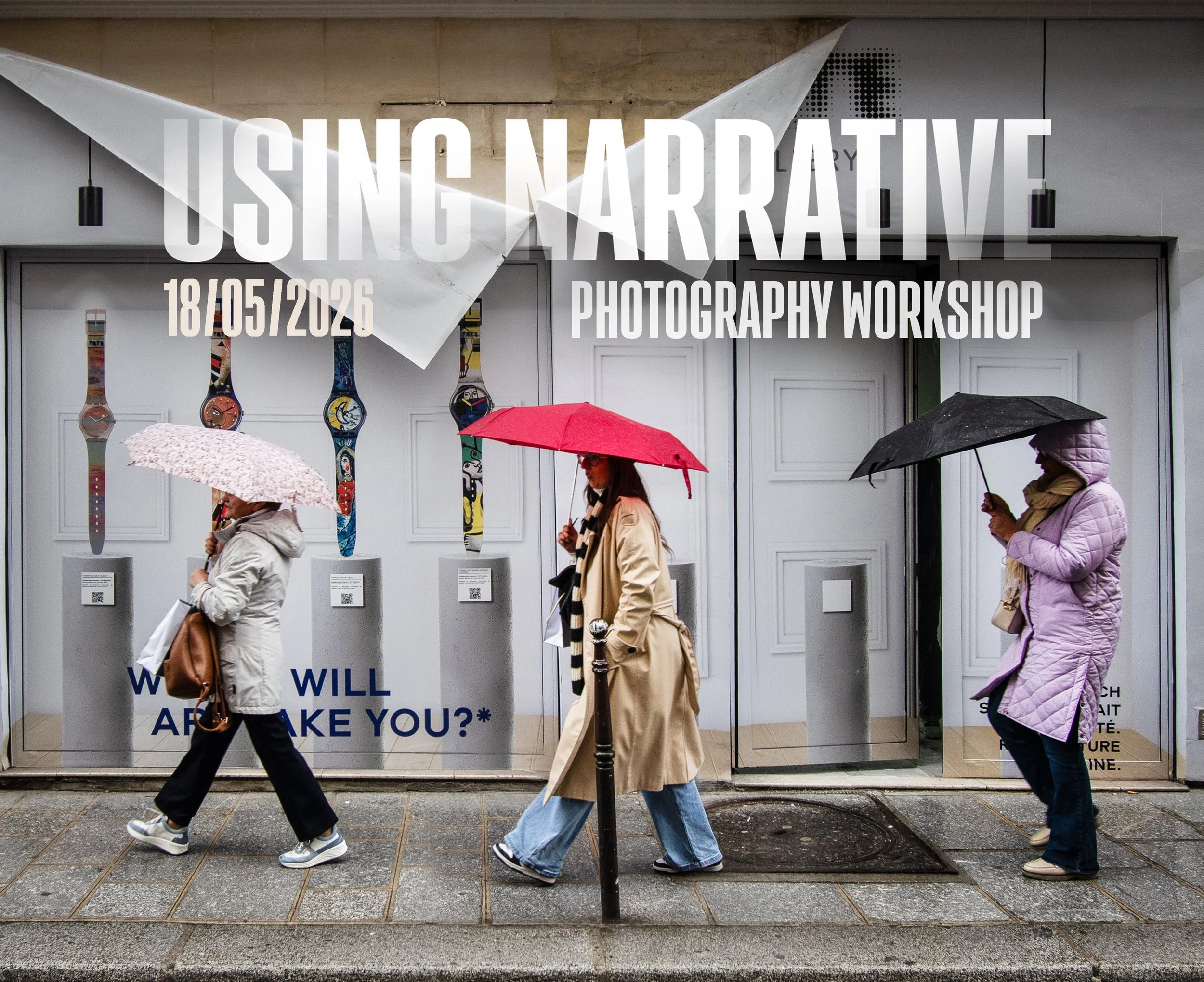 USING NARRATIVE in PHOTOGRAPHY will take a broad look at the art of storytelling. From single images to sequences and series, photographs with meaning that evoke emotions and convey a message. We will look at many techniques, tips and ideas while examining how elements like lighting, colour, context and simple body language can alter the tone and meaning of a photograph.